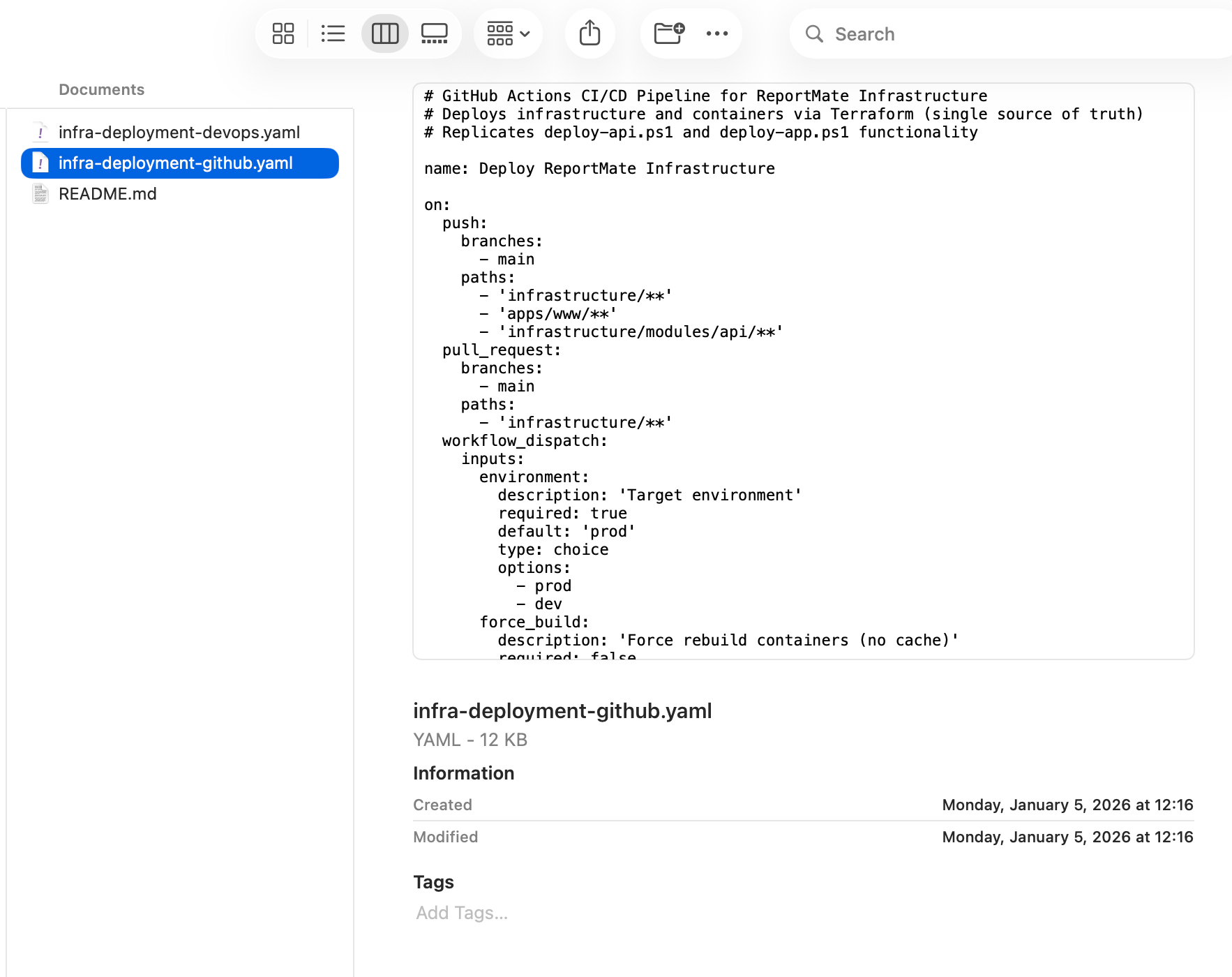 QuickLook on the Mac supports text files, plists, JSON—but YAML? Nothing out of the box. I fixed that with YAML Quick Look.